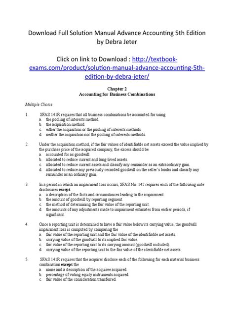 Read Online Solution Manual Advanced Accounting 5th Debra C Jeter PDF