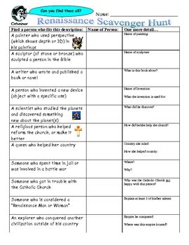 Download Renaissance Scavenger Hunt Answer Sheet Reader